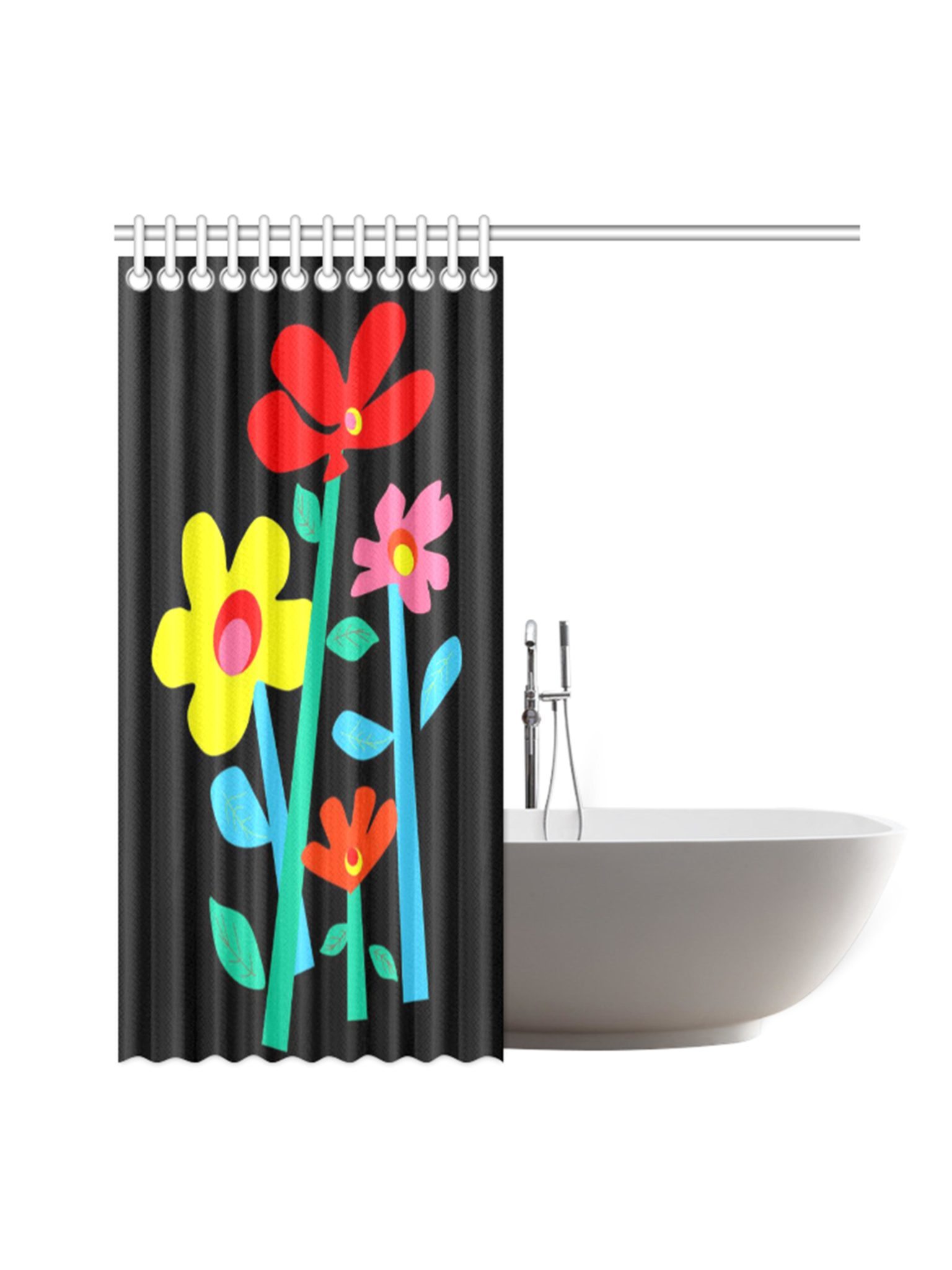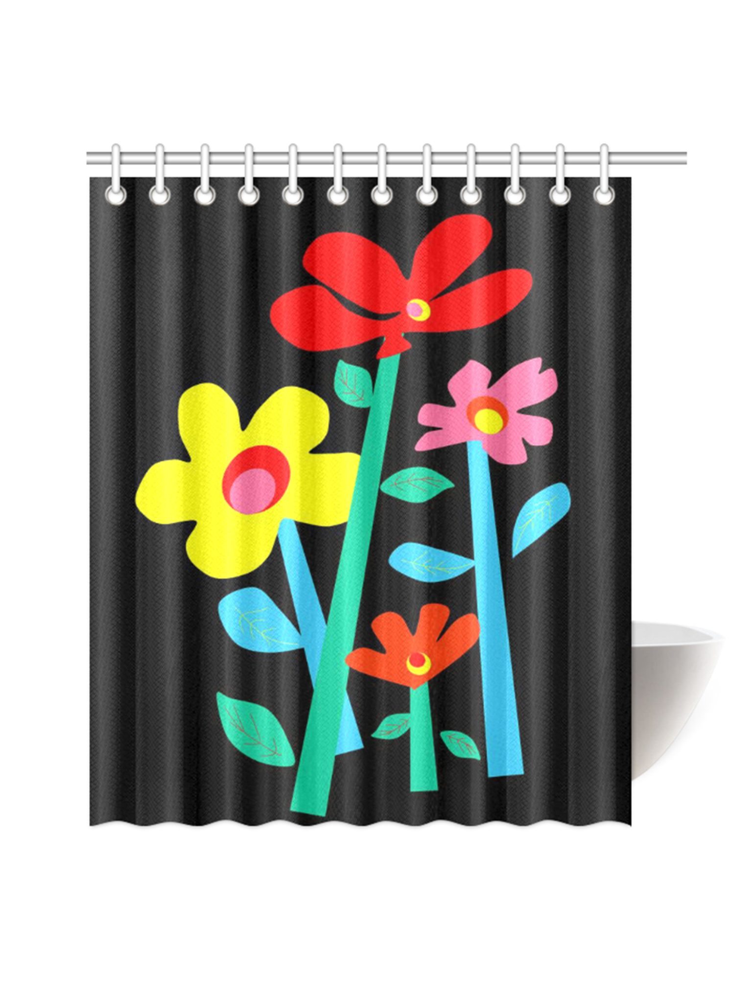 mod pop mid century modern inspired black floral SHOWER CURTAIN . original design