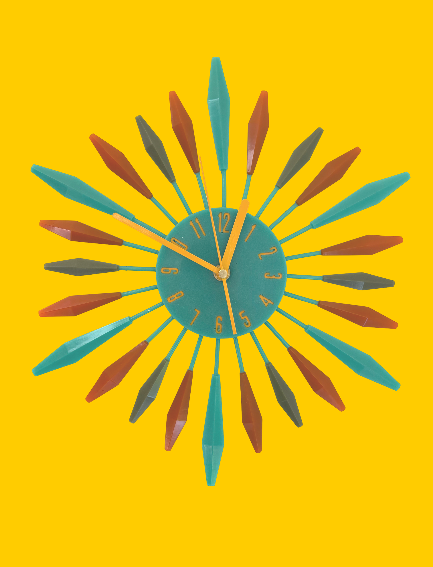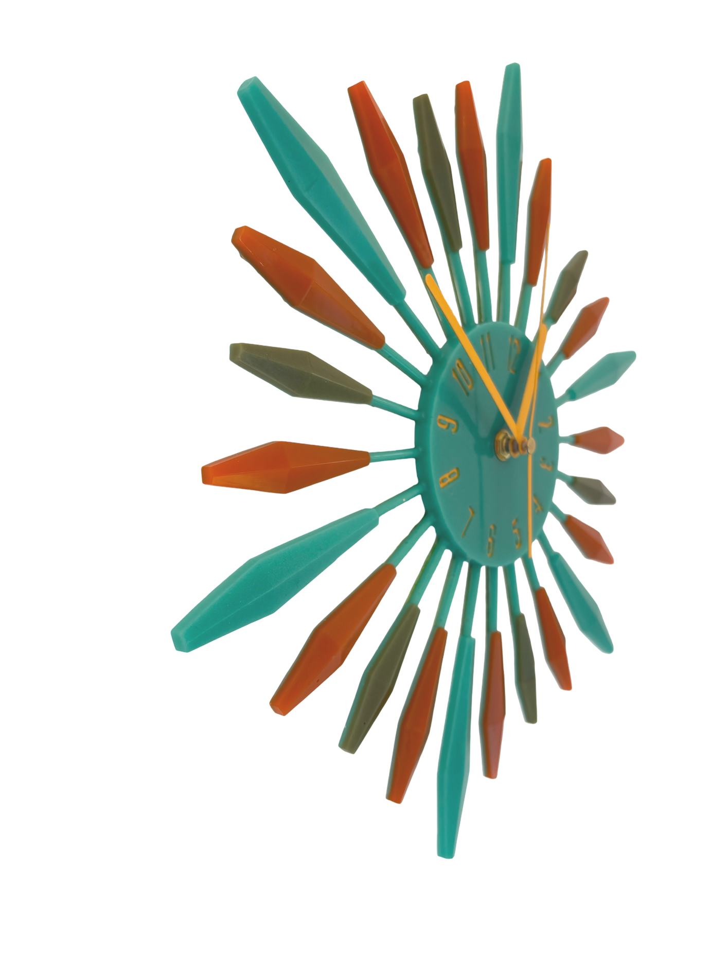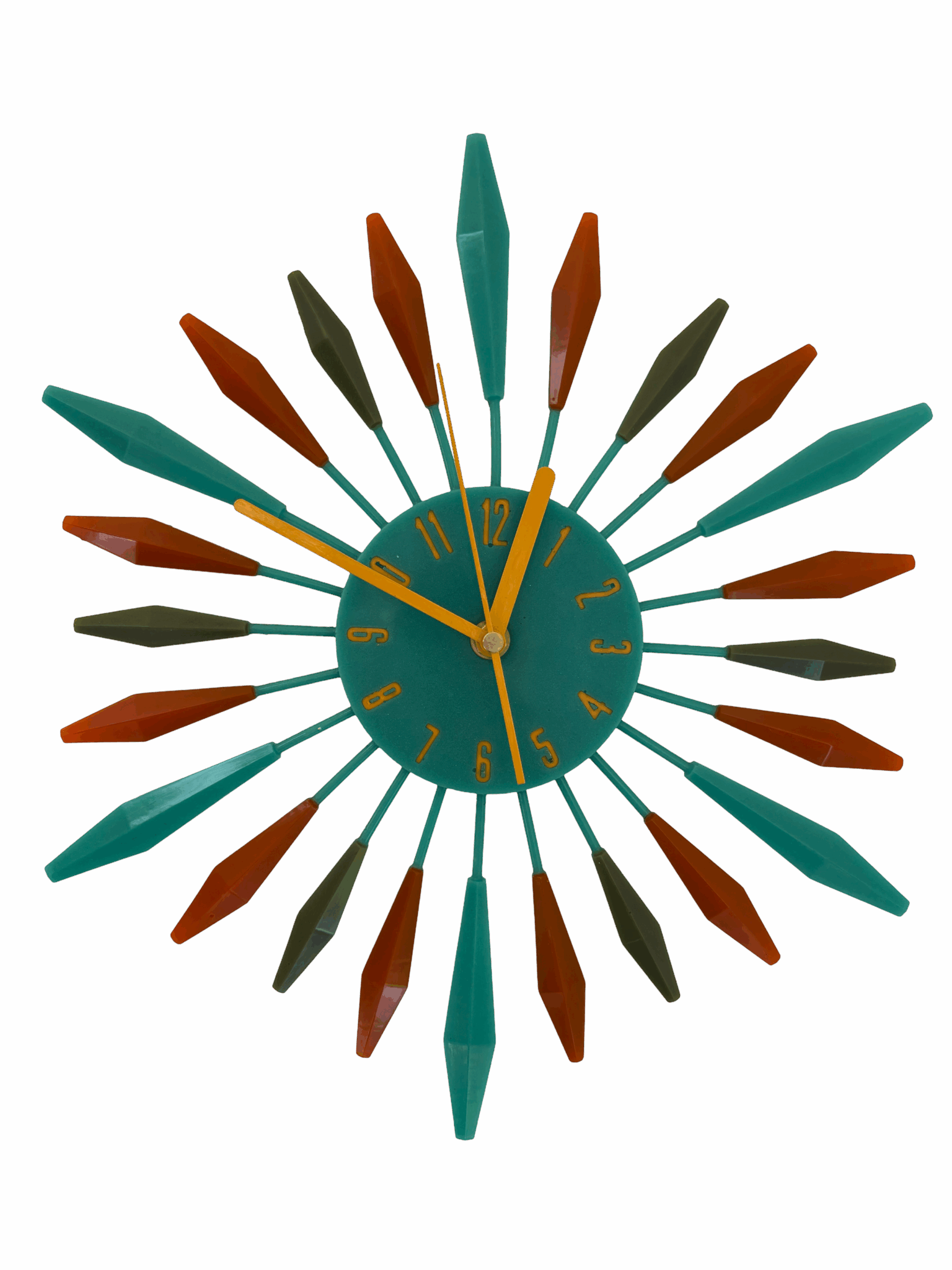 olive green and burnt orange and teal retro resin clock