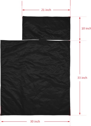 - The mat size in(W X H) 21″ x 33″. Attached comforter and pillow size in(W X H) 30″ x 33″ and 21″ x 10″.