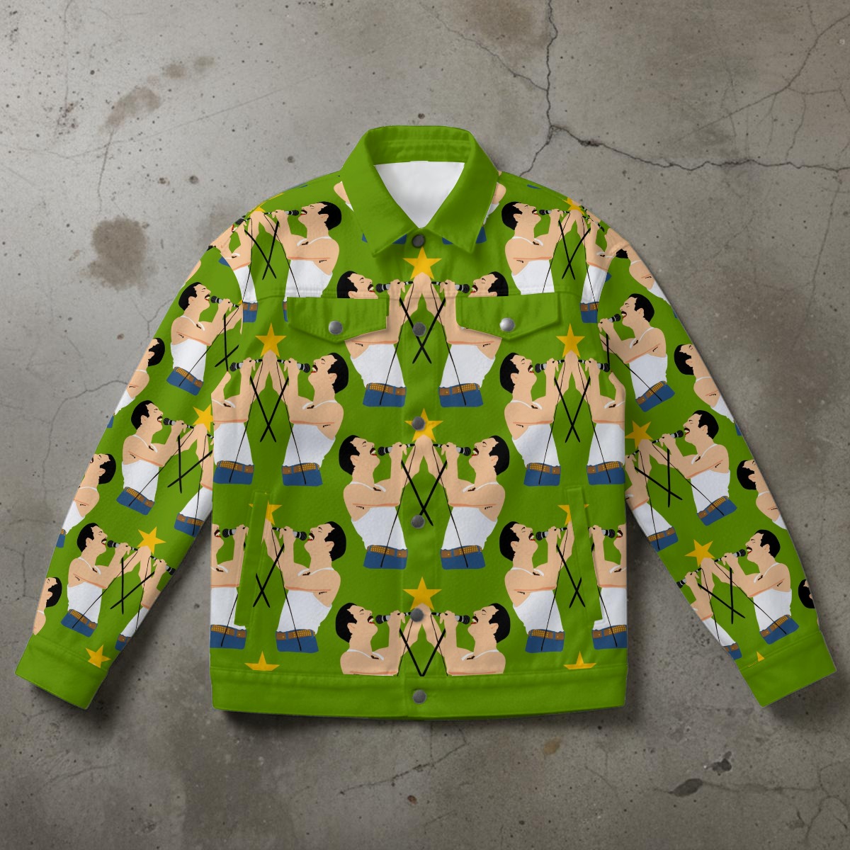 FREDDIE MERCURY CANVAS JEAN JACKET original illustration . sizes up to a 5X!!
