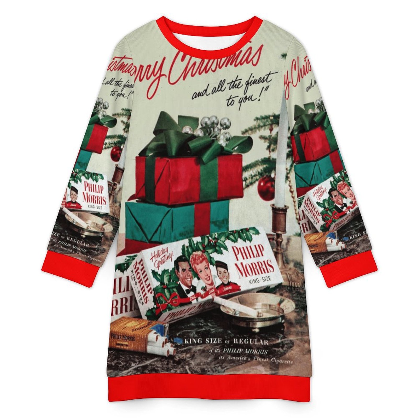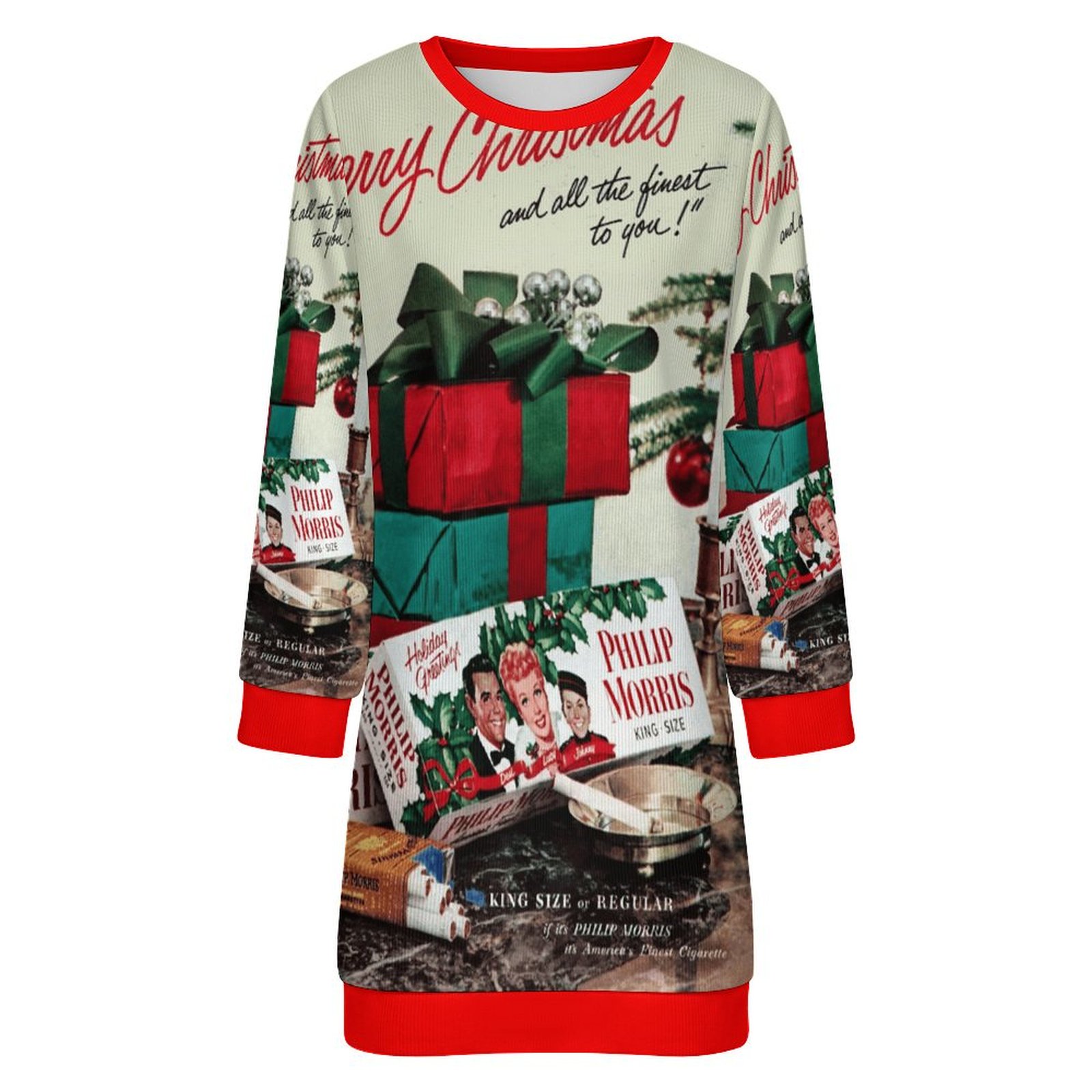 Be the first to review “Lucy and Ricky Vintage Cigarette ad CHRISTMAS SWEATER DRESS . original design”
