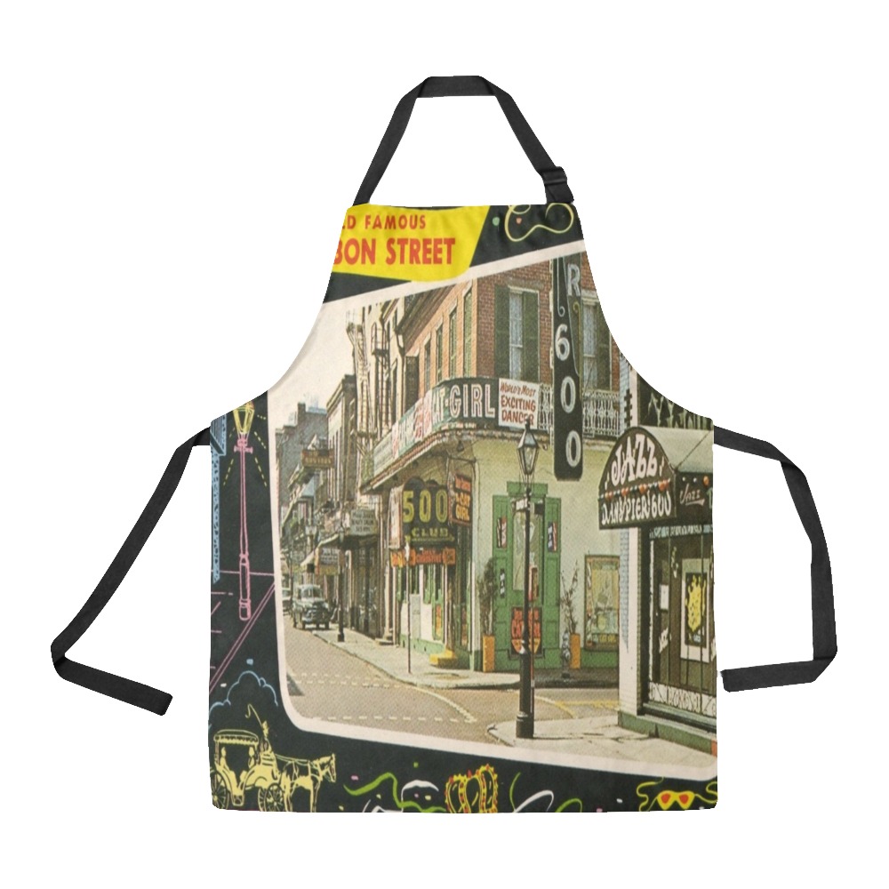 NEW ORLEANS BOURBON STREET VINTAGE POST CARD bib apron . original design