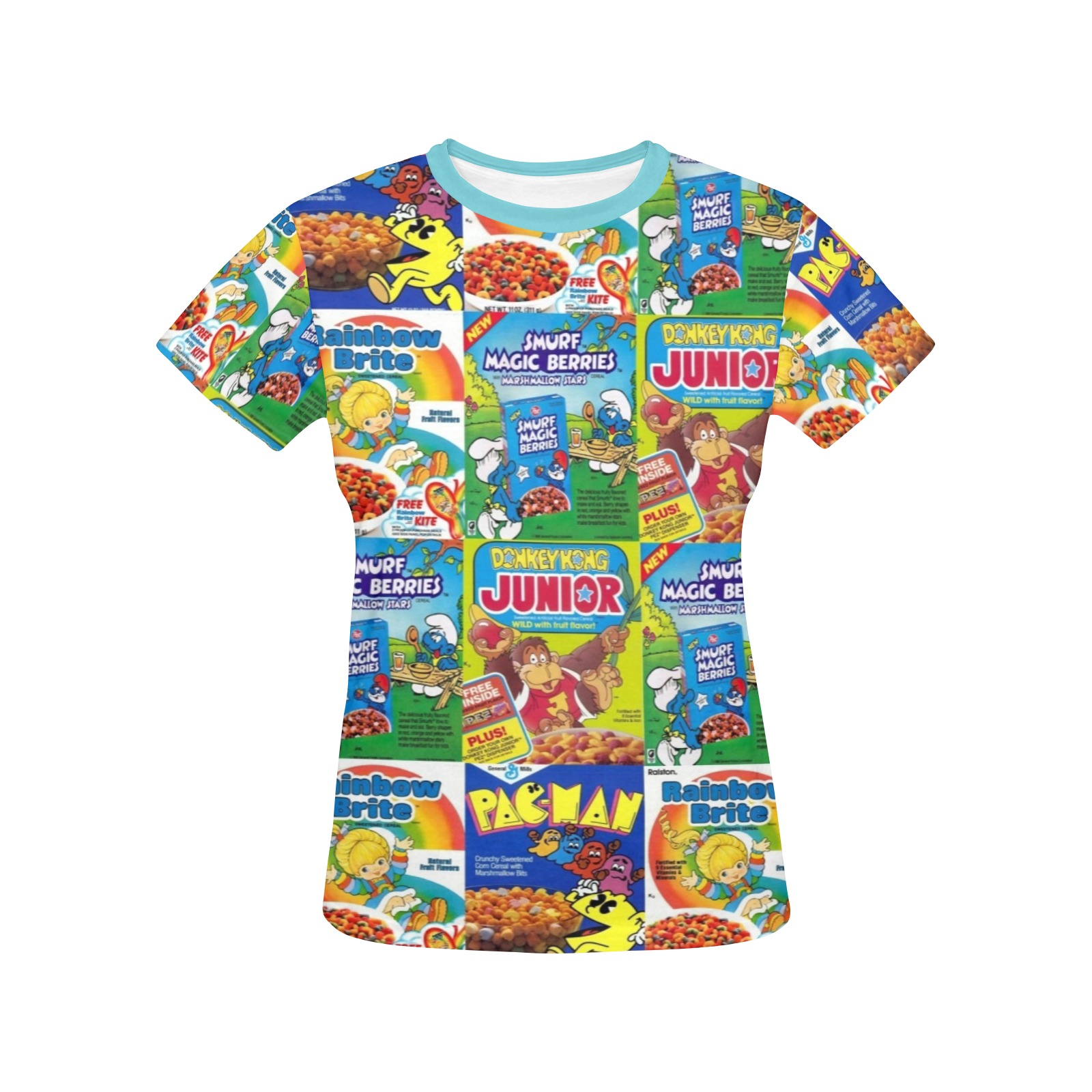 Be the first to review “retro cereal boxes women’s all over print tee”
